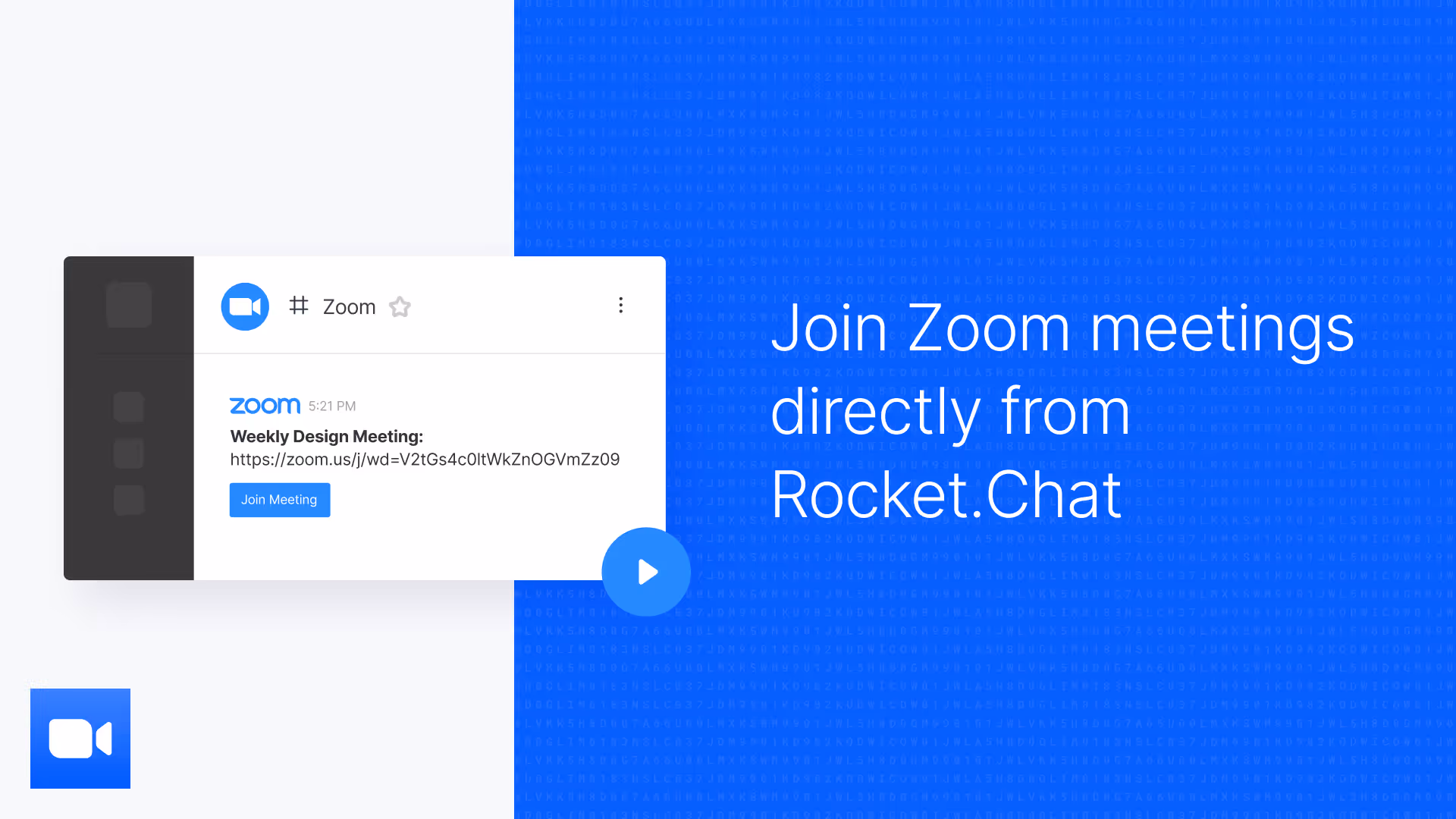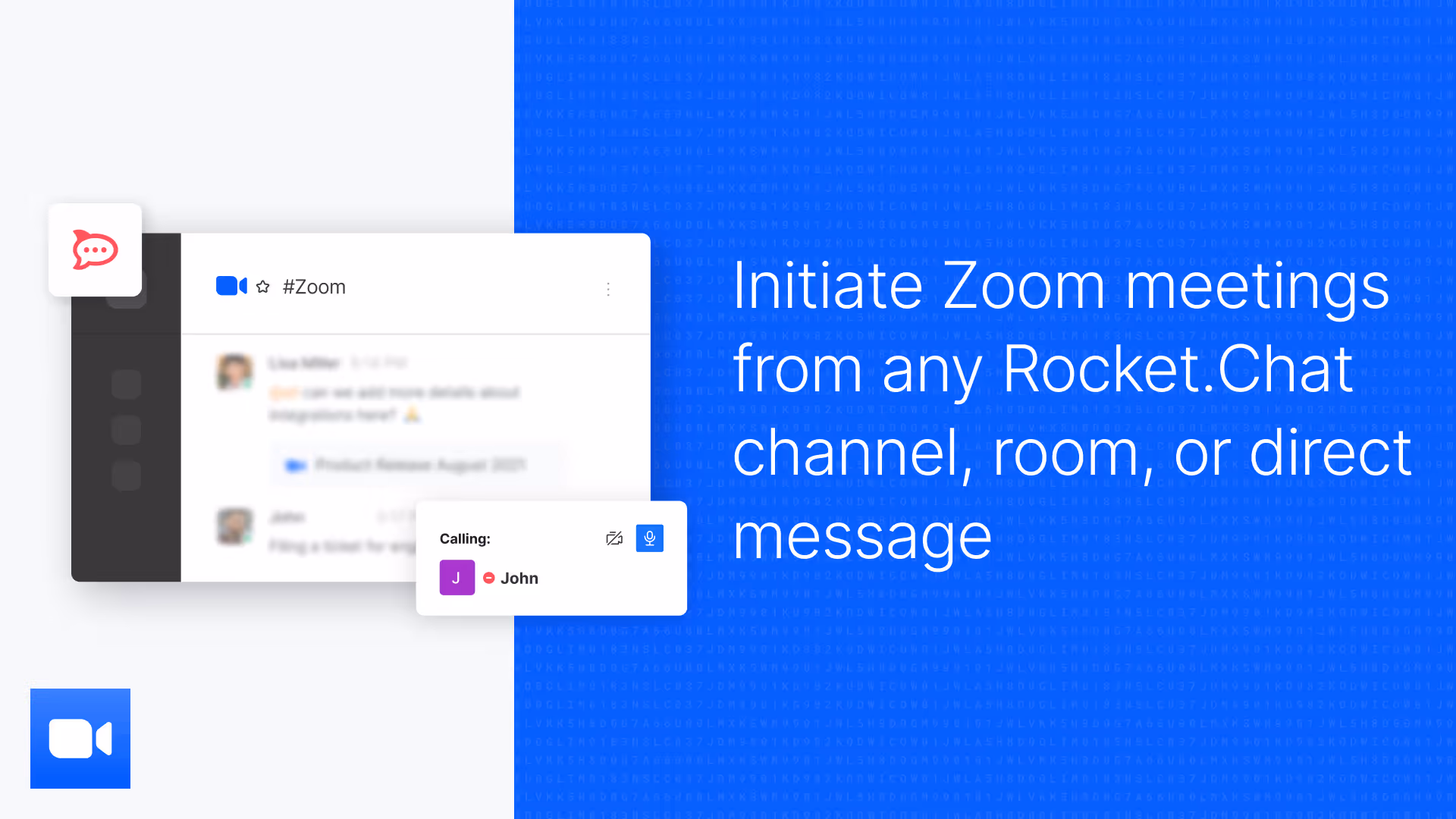 Ao integrar o Zoom em seu espaço de trabalho do Rocket.Chat, você pode:
