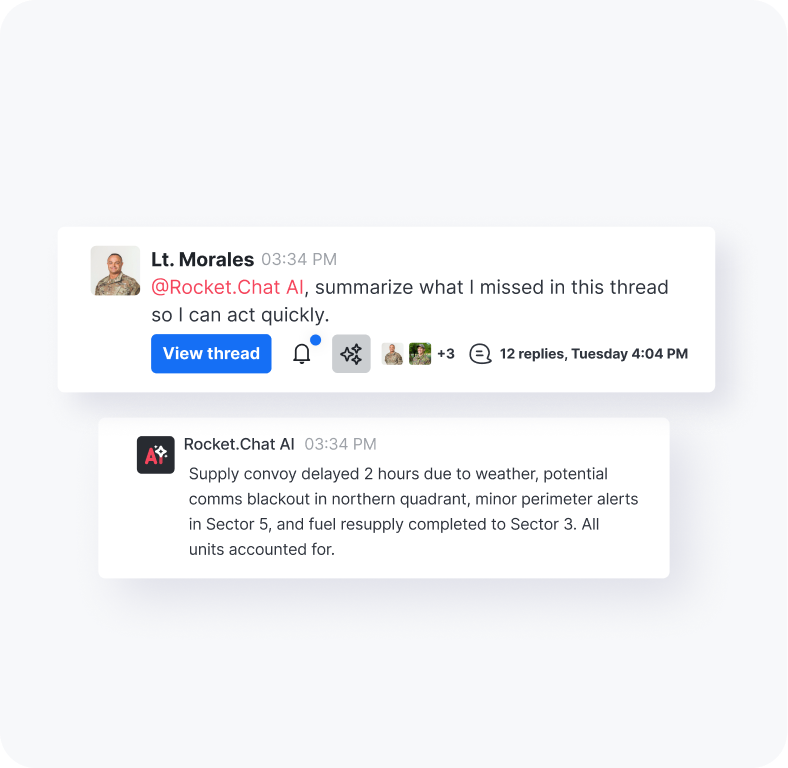 A IA destaca mensagens e salas não lidas, ajudando as equipes a se manterem alinhadas e a tomarem decisões sem perder o contexto crítico.