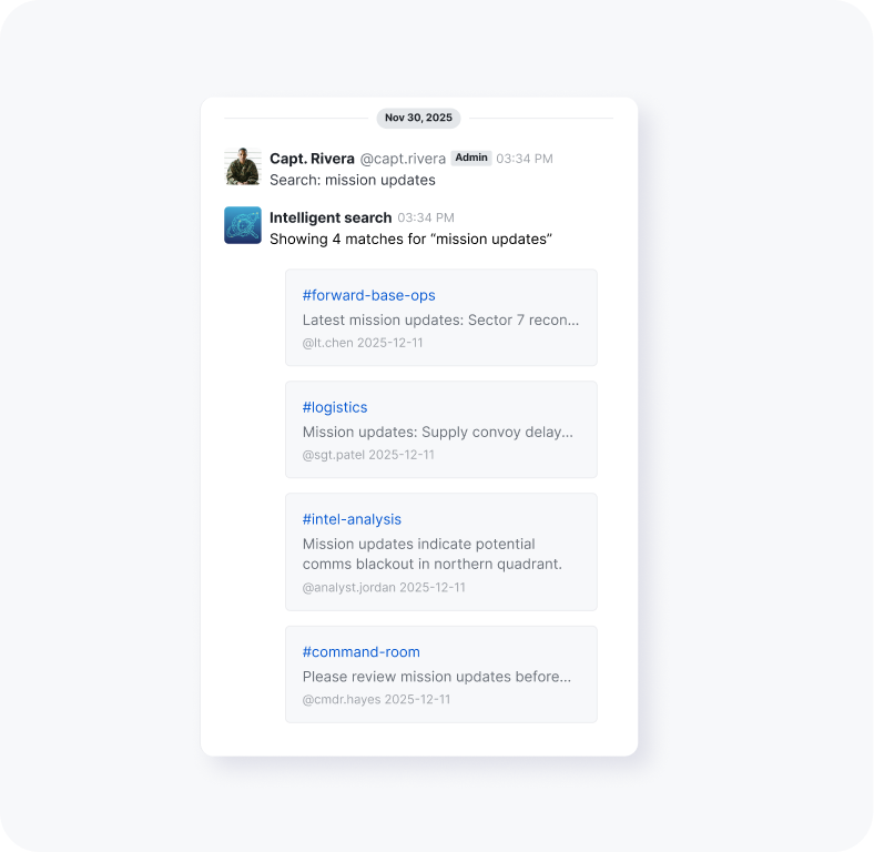 A pesquisa de IA baseada em intenção conecta discussões, decisões e sinais fragmentados entre salas e janelas de tempo, oferecendo às equipes uma visão consolidada de informações operacionais críticas.